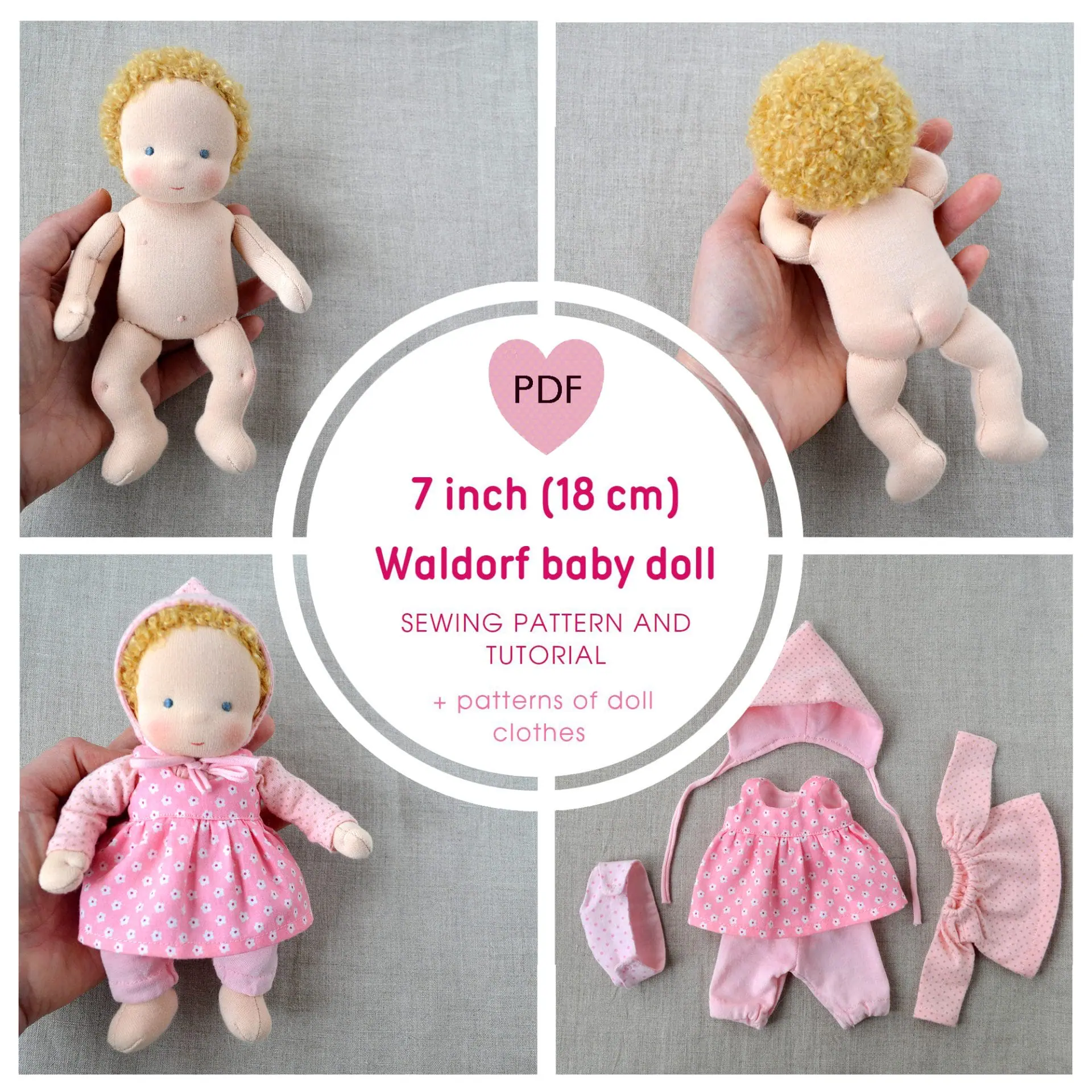 DIY Waldorf baby doll 7 inch 18 cm tall. PDF sewing pattern DailyDoll Shop Very well made.
