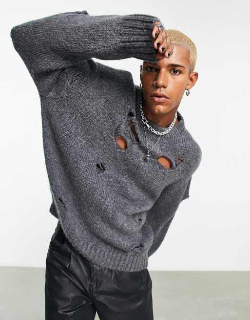 ASOS DESIGN oversized knitted sweater with distressing in light Very well made.