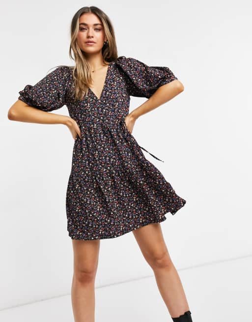 Stradivarius Robe cache c ur courte Imprim floral sombre Very well made.