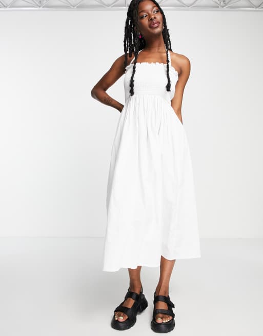 COLLUSION Robe mi longue d t fronc e dos nu en broderie anglaise Blanc Very well made.