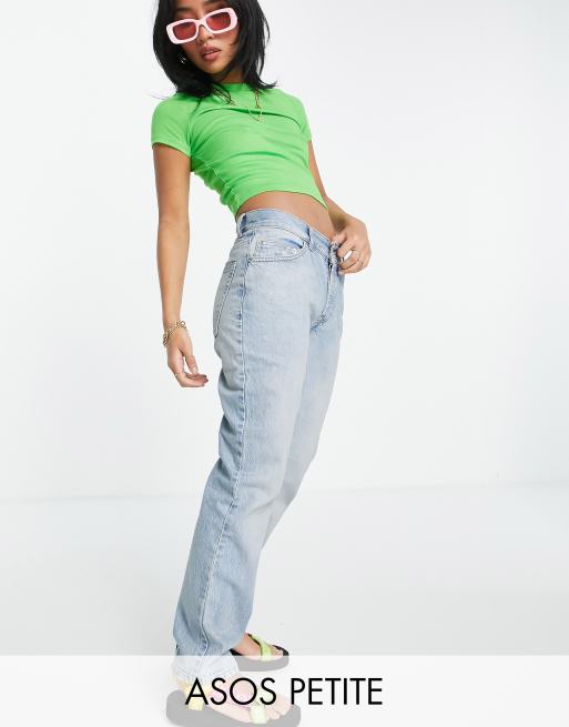 ASOS DESIGN Petite Jean droit taille mi haute en coton m lang d chirures style ann es 90 D lavage l ger MBLUE Very well made.