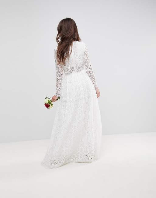 ASOS DESIGN Robe longue de mariage en dentelle avec crop top manches longues Blanc Very well made.