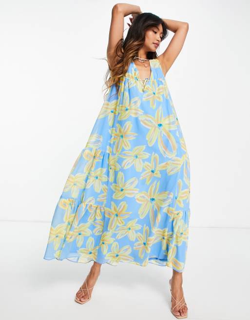 ASOS DESIGN Robe longue trap ze sans manches ourlet volant Very well made.