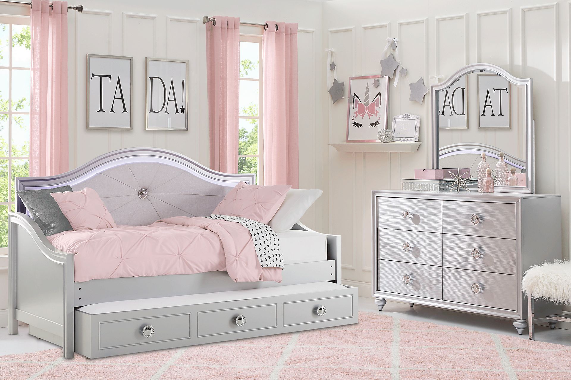 Evangeline 5 Pc Silver Gray Twin Bedroom Set With Mirror Daybed Dresser Rooms to Go Very well made.