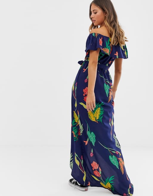 Influence Robe longue paules d nud es fleurs Bleu marine Very well made.
