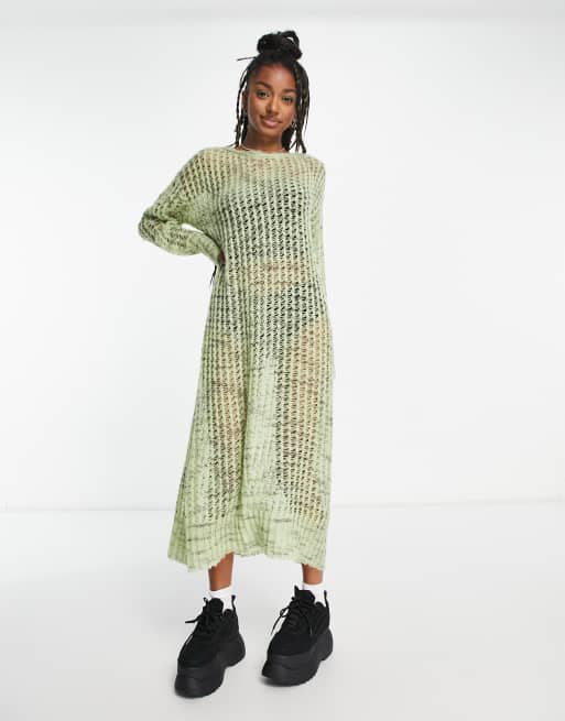 COLLUSION Robe pull oversize en maille ajour e teinte par sections Citron vert Very well made.