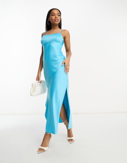 Pimkie Robe longue bretelles en satin Bleu turquoise ASOS Very well made.