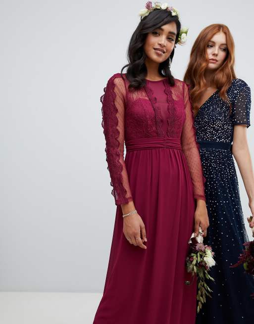 TFNC Robe longue pour demoiselles d honneur avec d tails en dentelle Bordeaux Very well made.