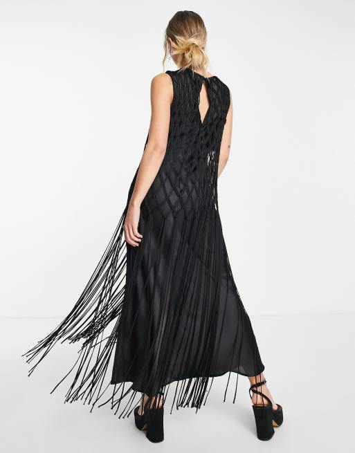 ASOS DESIGN Robe longue satin e avec d tails en macram Noir Very well made.