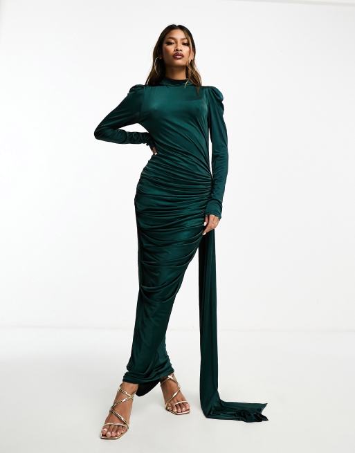 VL The Label Robe longue fronc e col montant Vert fonc ASOS Very well made.