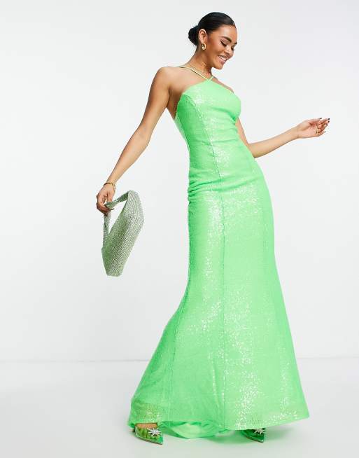 Goddiva Robe longue orn e de sequins dos nu et lani res Vert citron Very well made.
