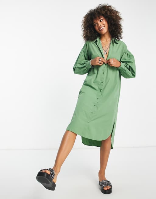 Robe Chemise Vert Kaki Manches Longues Very well made.