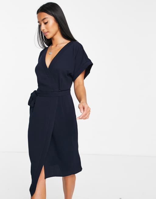 ASOS DESIGN Petite Robe mi longue coupe cache c ur Bleu marine Very well made.