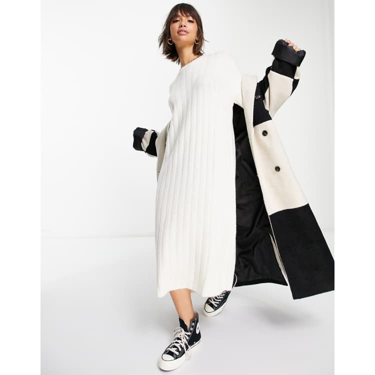 Col roul sans manches Maxi robe en tricot ray pull costume Beige Very well made.