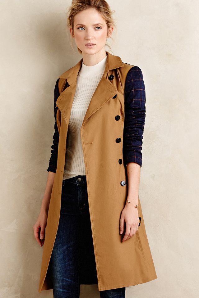 Colorblocked Plaid Trench Coat Anthropologie Very well made.