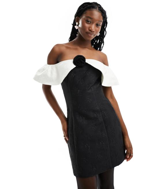 Sister Jane Encore Robe bardot courte en jacquard avec petite rose Noir Very well made.