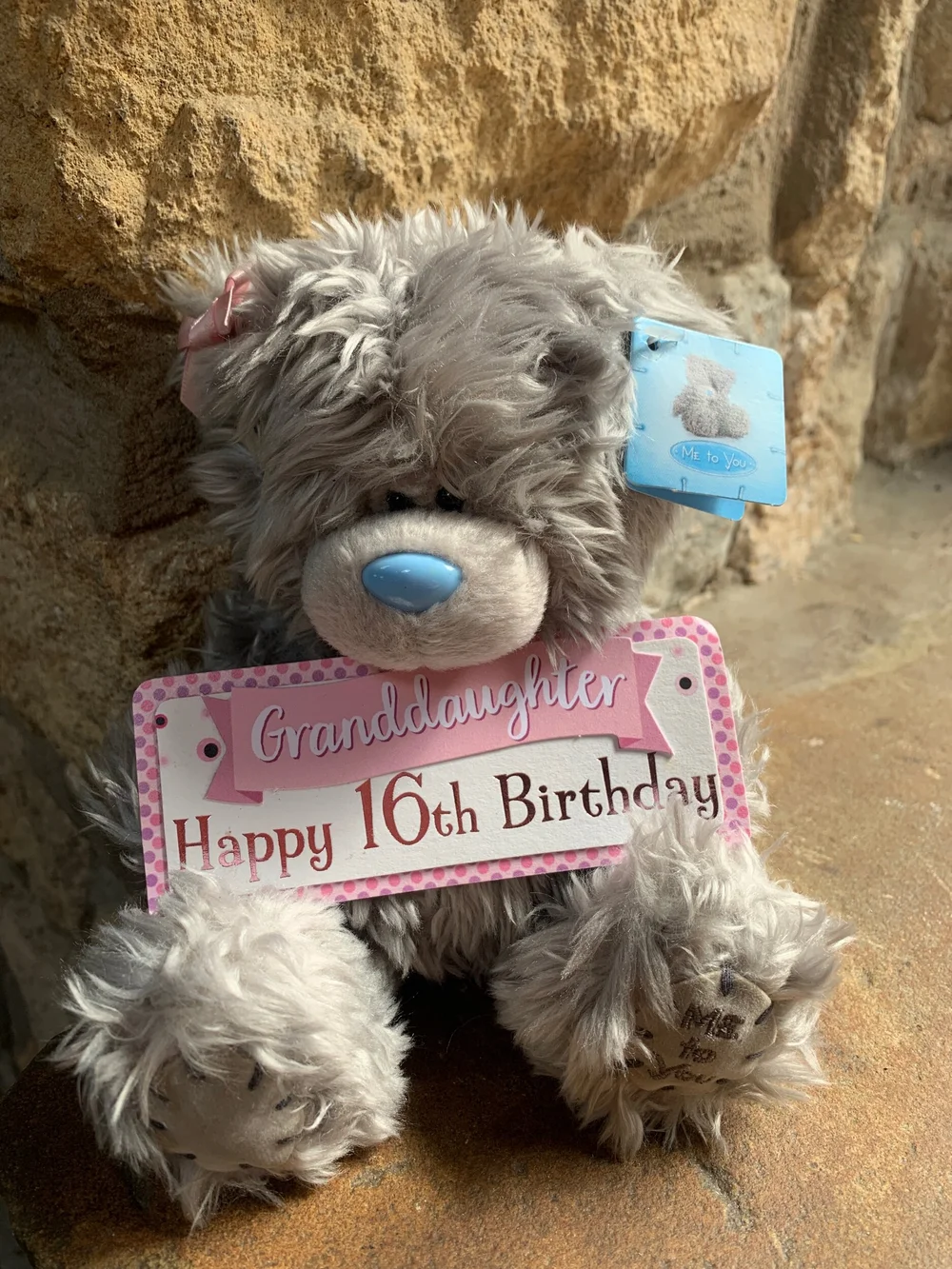 Recordable 16th Birthday Teddy Bear Grey 40cm Very well made.
