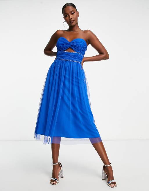 Trendyol Robe bandeau mi longue d coupes Bleu ASOS Very well made.