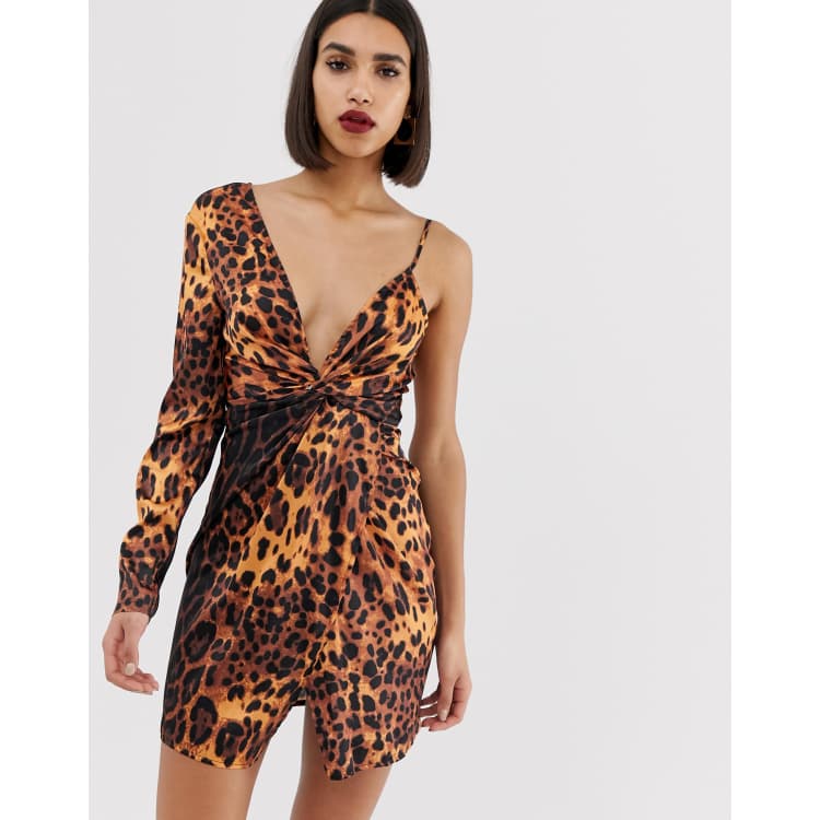 Brown Mesh Leopard Print Ruched Bodycon Dress PrettyLittleThing USA Very well made.