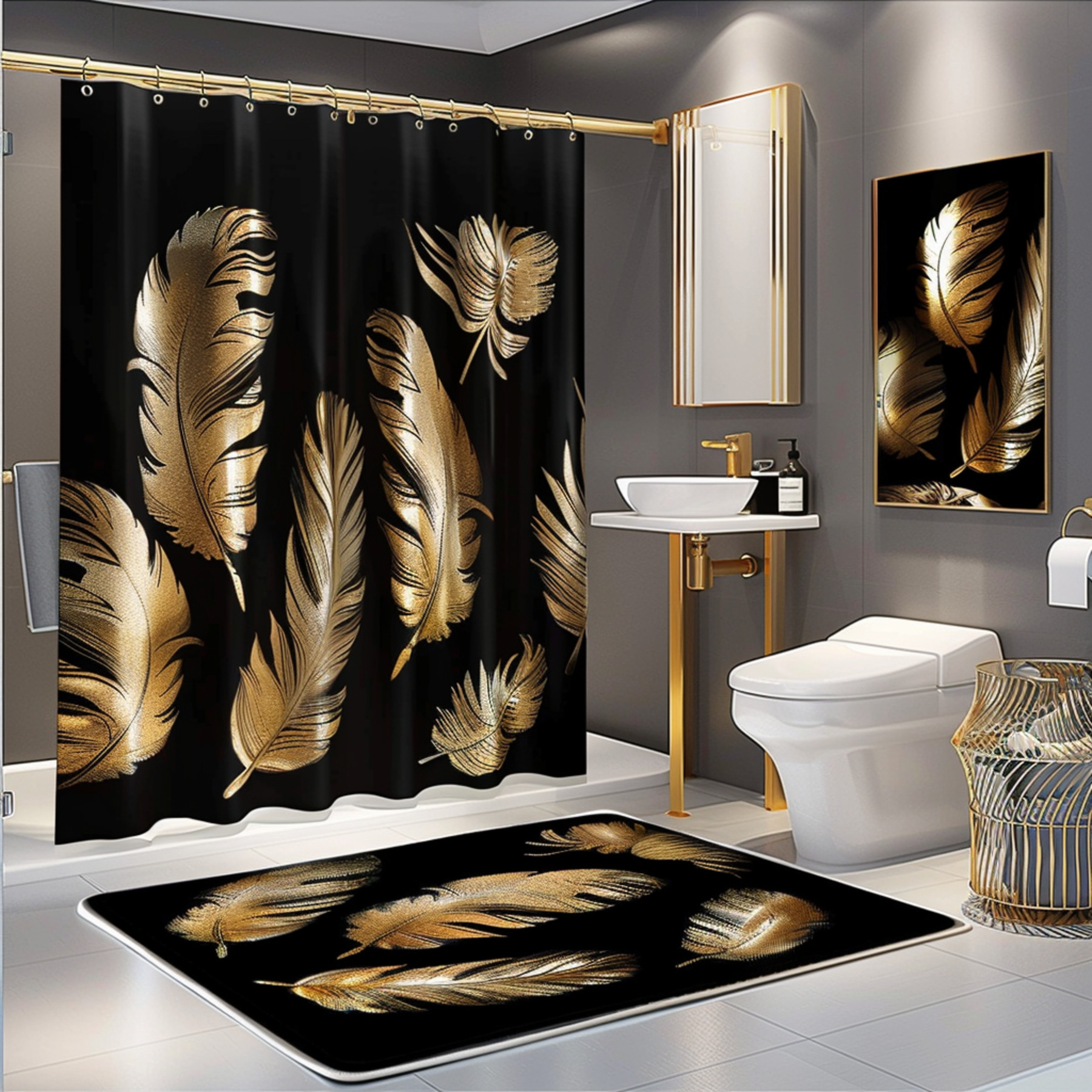 Black and Gold Shower Curtain Set Abstract Metallic Gold Flowers Plant Shower Curtains Baroque Style Black Backdrop Bath Curtain Gothic Bathroom Curtain Fabric Waterproof with Hooks 72 3 Walmart Very well made.