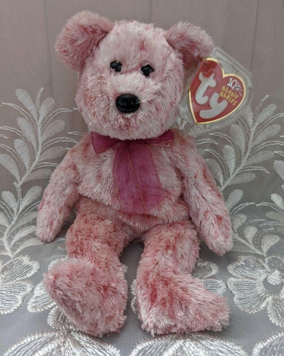 Ty Beanie Baby Smitten the Bear Pink Heart Nose Stuffed Animal MWMT Walmart Very well made.
