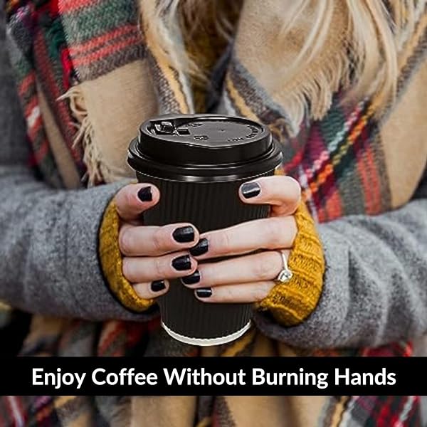 Homeshopa Disposable Coffee Cups with Sip Lids 8oz Triple Walled Insulated Ripple Paper Cups for Hot Drinks Coffee Tea Takeaway Cups with Leak Proof Lids Home Party Use Brown 32 Pack Very well made.