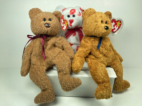Three Large Vintage TY Beanie Babies Bears Two Classic Bears One 100th Anniversary Bear Very well made.