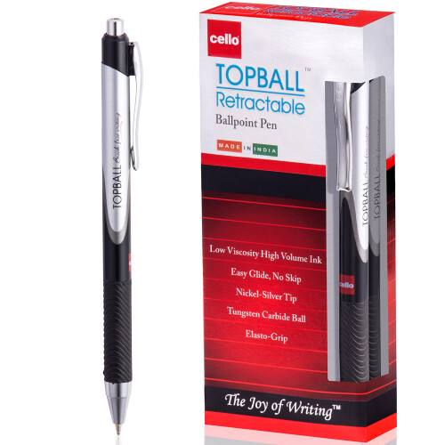 Topball Grip Black Retractable Ballpoint Pens Medium Point 1.0 mm Black Pens Pack of 12 Biro Ball Point Pens Ideal for School Work Home on OnBuy Very well made.