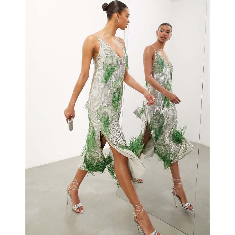 ASOS EDITION Robe sequins mi longue avec bretelles fines et Very well made.