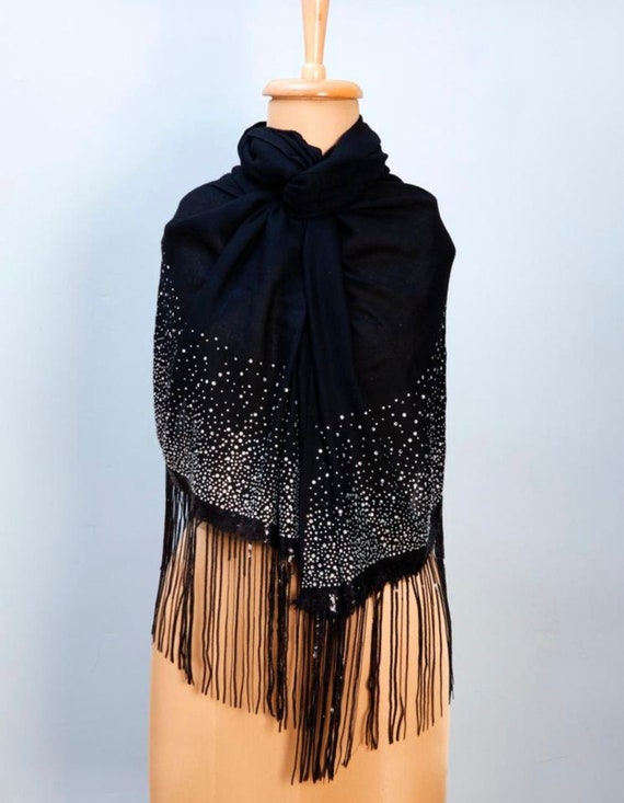 Black Cashmere Scarf with Rustic Embroidery Asneh Very well made.
