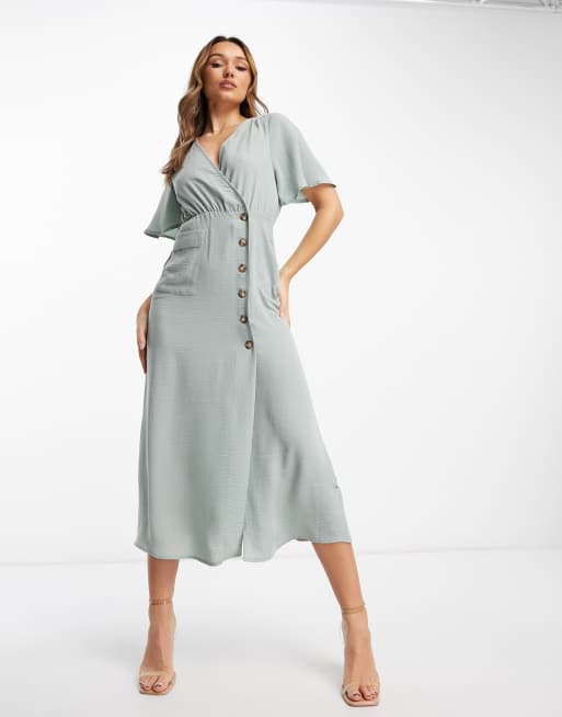 ASOS DESIGN Robe mi longue avec jupe portefeuille boutonn e et poche uf de canard Very well made.