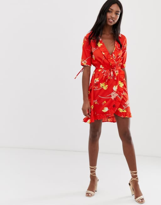 Influence Tall Robe portefeuille fleurs avec manches nou es et volants Rouge Very well made.