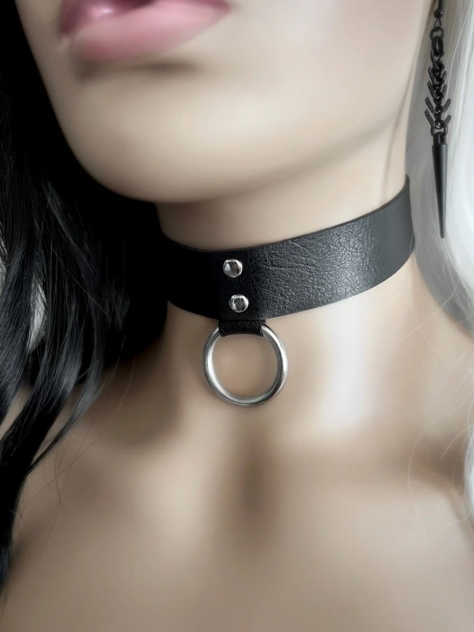 1 Wide Black Choker With Silver O Ring Our Widow Very well made.