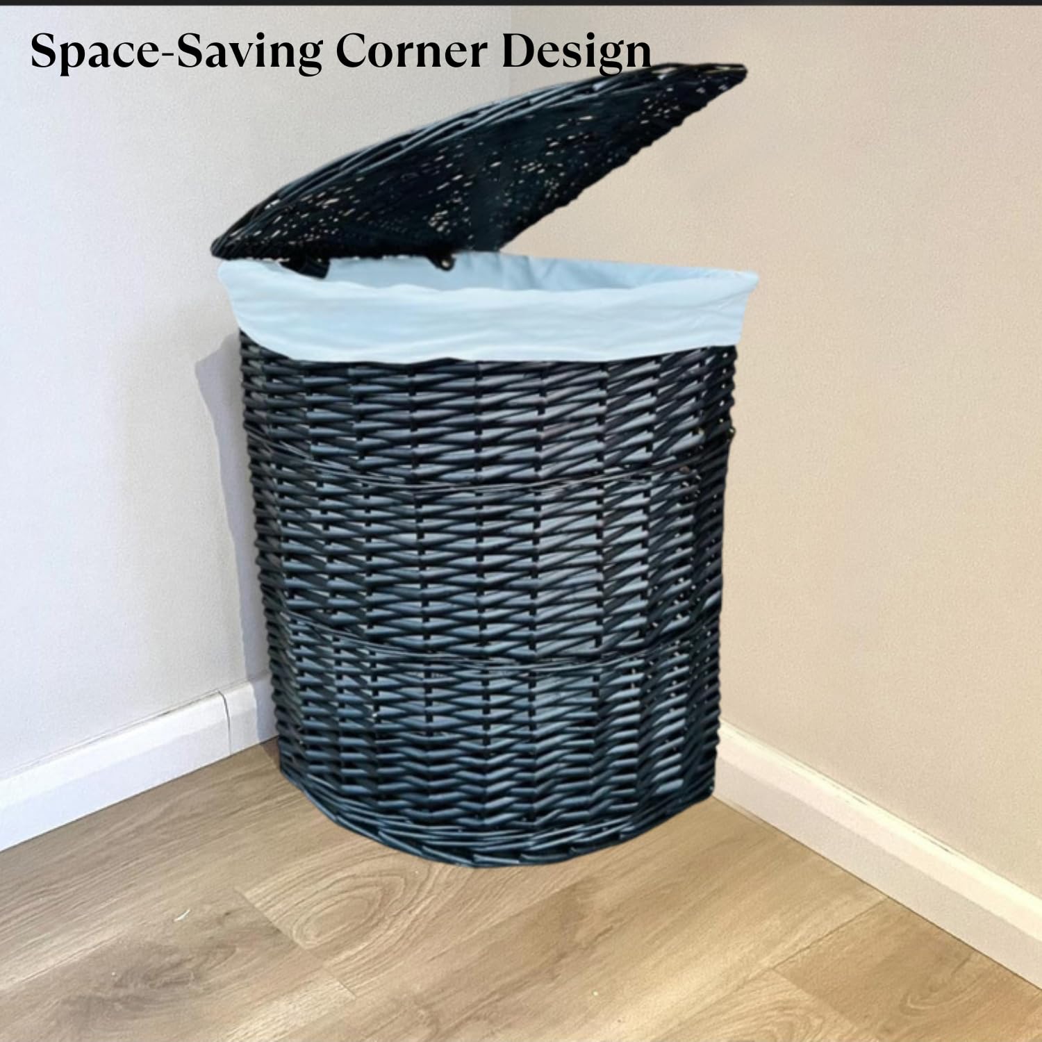 Lidded Grey Wicker Corner Linen Storage Laundry Basket with Cotton Lin Wickerfield Very well made.