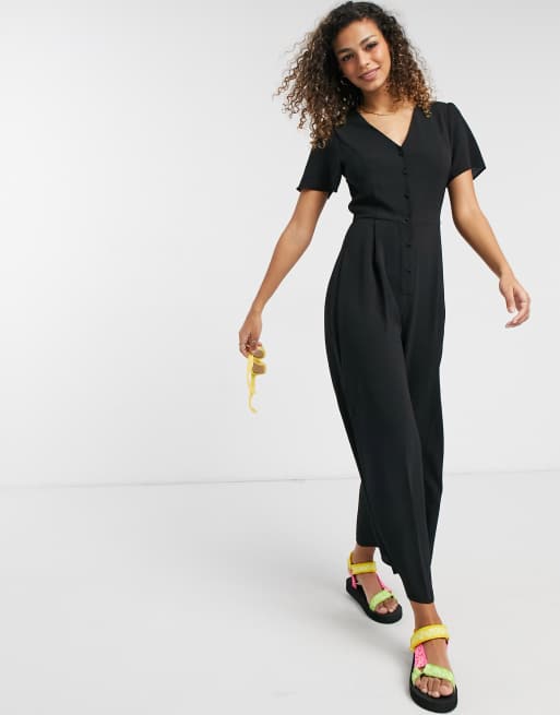 ASOS DESIGN Combinaison jupe culotte r tro manches courtes en cr pe textur Noir Very well made.