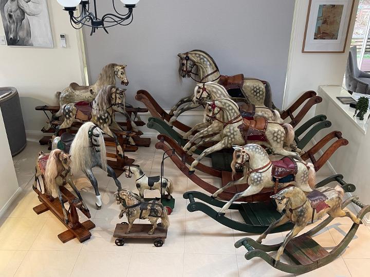 Little riders on horses In the photo Valley Legend the rocking horse made of walnut wood make to order 2 3 days Sparkle Dream the rocking horse made Very well made.