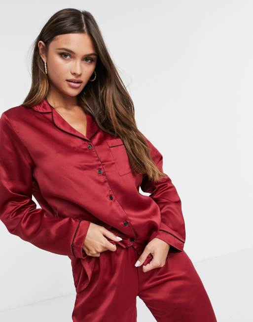 Loungeable satin pyjama shirt in burgundy Very well made.