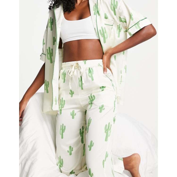 Cosmos Satin Long Leg PJ Set in Oversized Mono Leopard Dancing Very well made.