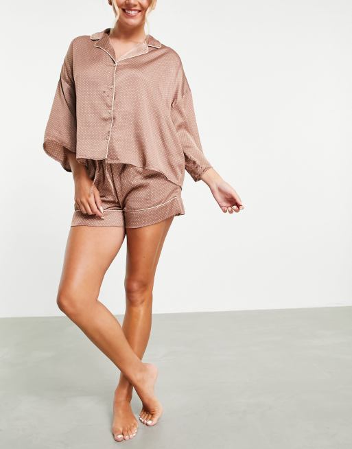 Vero Moda satin piped pyjama short set in mocha polka dot Very well made.
