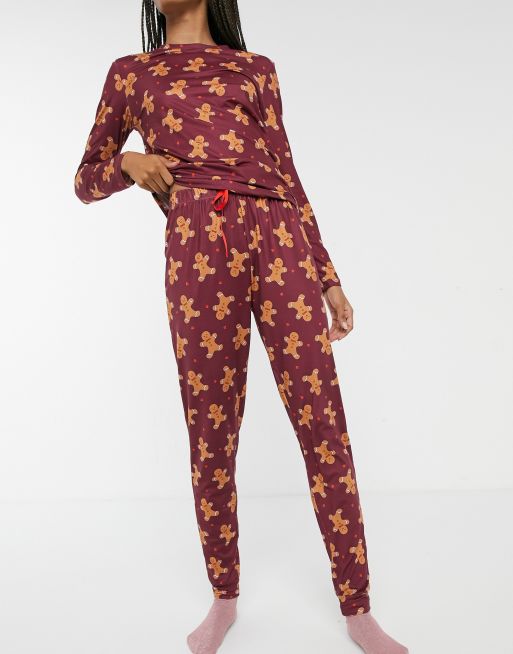 Loungeable printed ginger bread man long pyjama set in black Very well made.