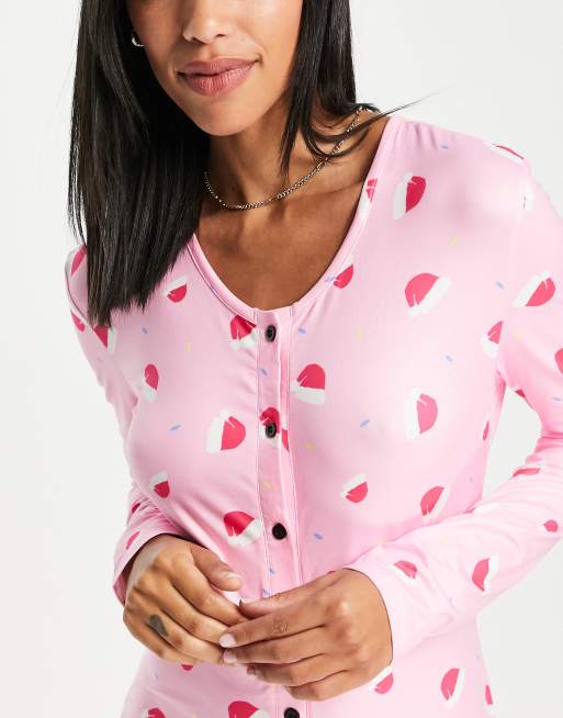 Loungeable christmas pyjama romper in santa hat print Very well made.