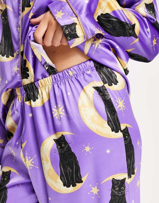 The Wellness Project x Chelsea Peers satin long pyjamas in cat on the moon print Very well made.
