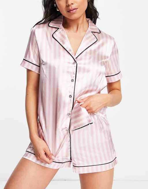 Lipsy satin short sleeve shirt short pajama set in pink stripe Very well made.