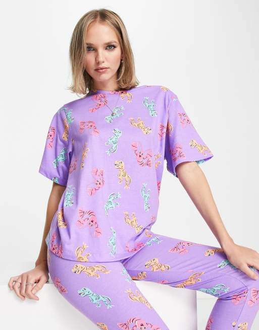 ASOS DESIGN abstract animal oversized tee legging pajama set in rust pink Very well made.