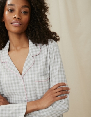 Stitch Detail Cotton Gingham Pajama Set Very well made.