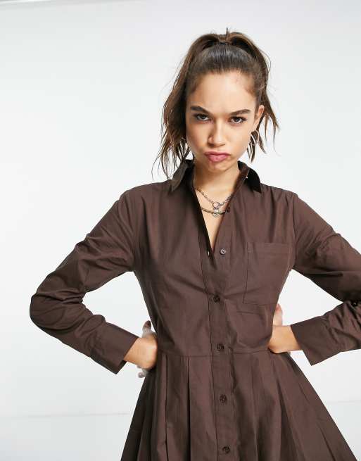 COLLUSION Robe chemise courte pliss e Marron Very well made.