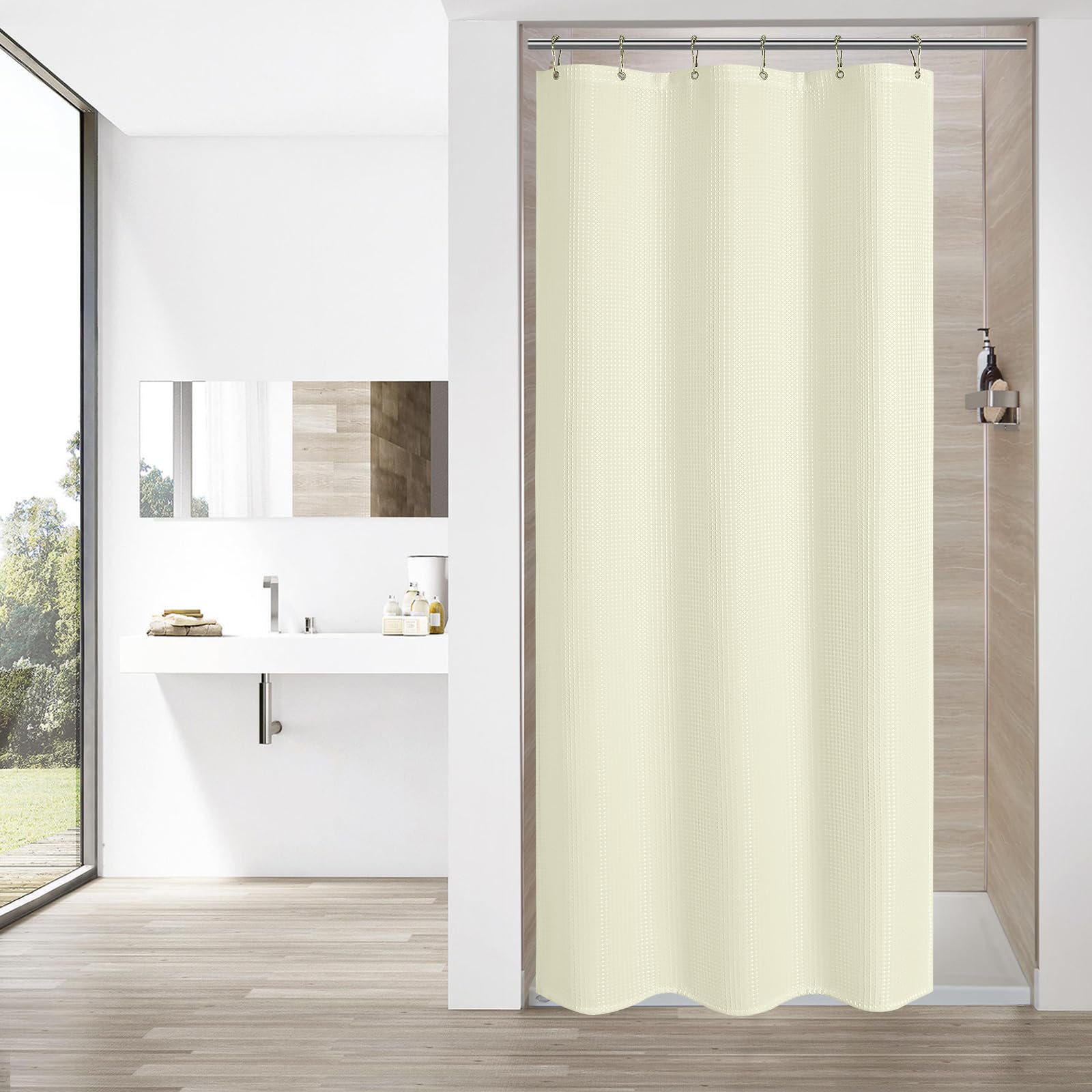 MitoVilla Beige Waffle Small Stall Shower Curtain 36 x 72 Half Size Shower Curtain Modern Fabric Narrow Shower Curtains for Luxury Hotel Bathroom Very well made.