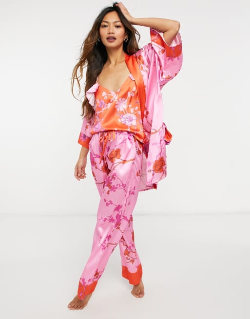 Liquorish sleepwear blossom print robe in pink and red Very well made.