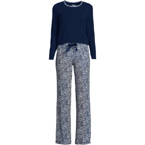 Women s Knit Pajama Set Long Sleeve T Shirt and Pants Lands End Very well made.