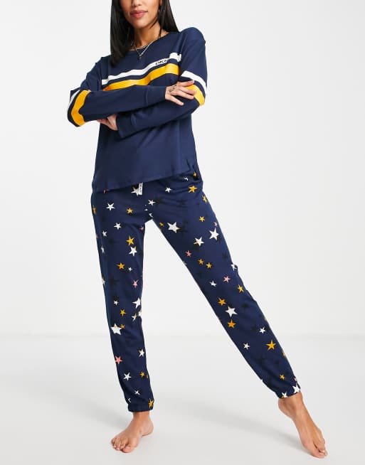 DKNY lounge brushed top and jogger set in navy star print Very well made.